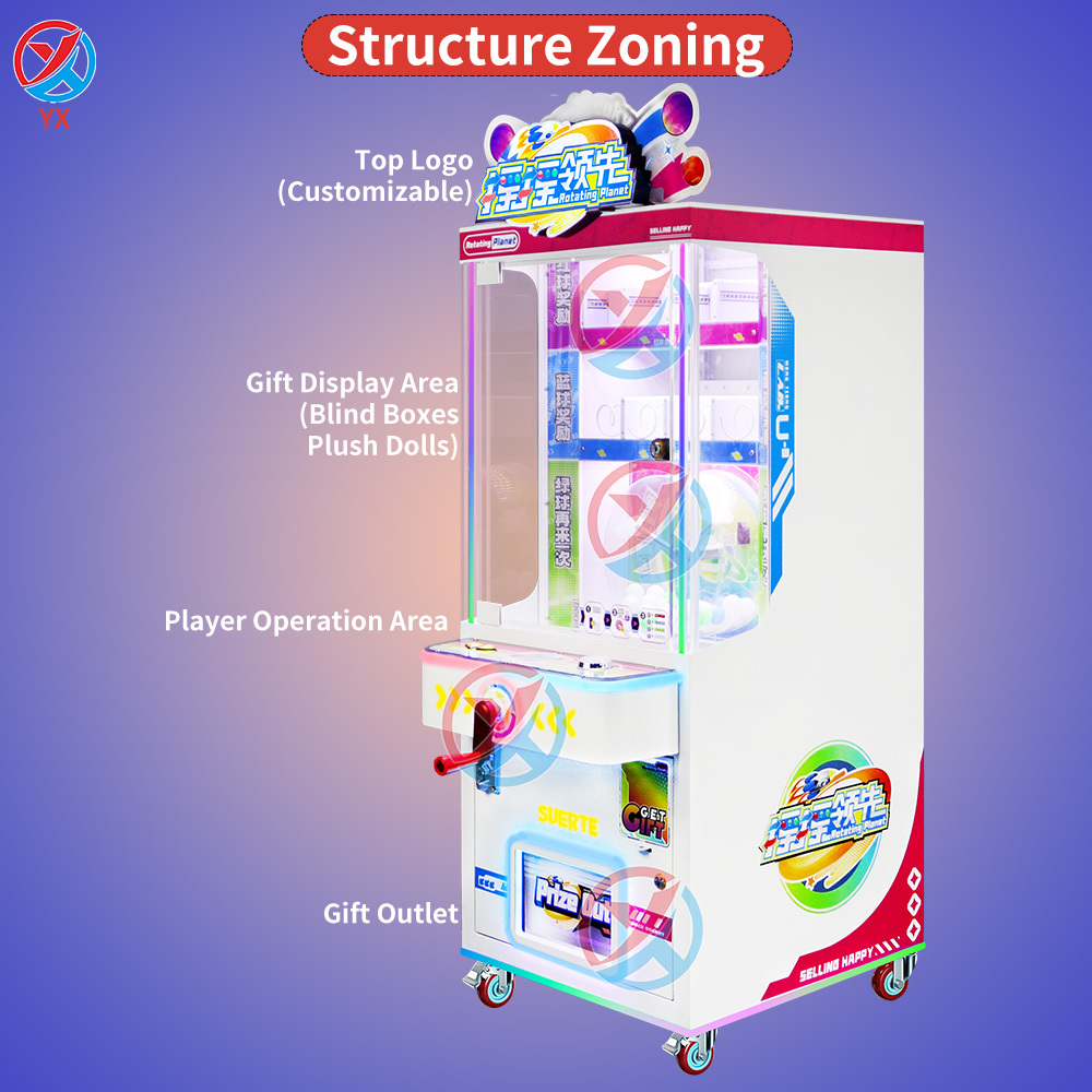 This coin operated shake ball machine is designed for blind box toys, plush gifts, and prize redemption. With simple gameplay and strong visual attraction, it is highly popular in shopping malls and amusement centers.
